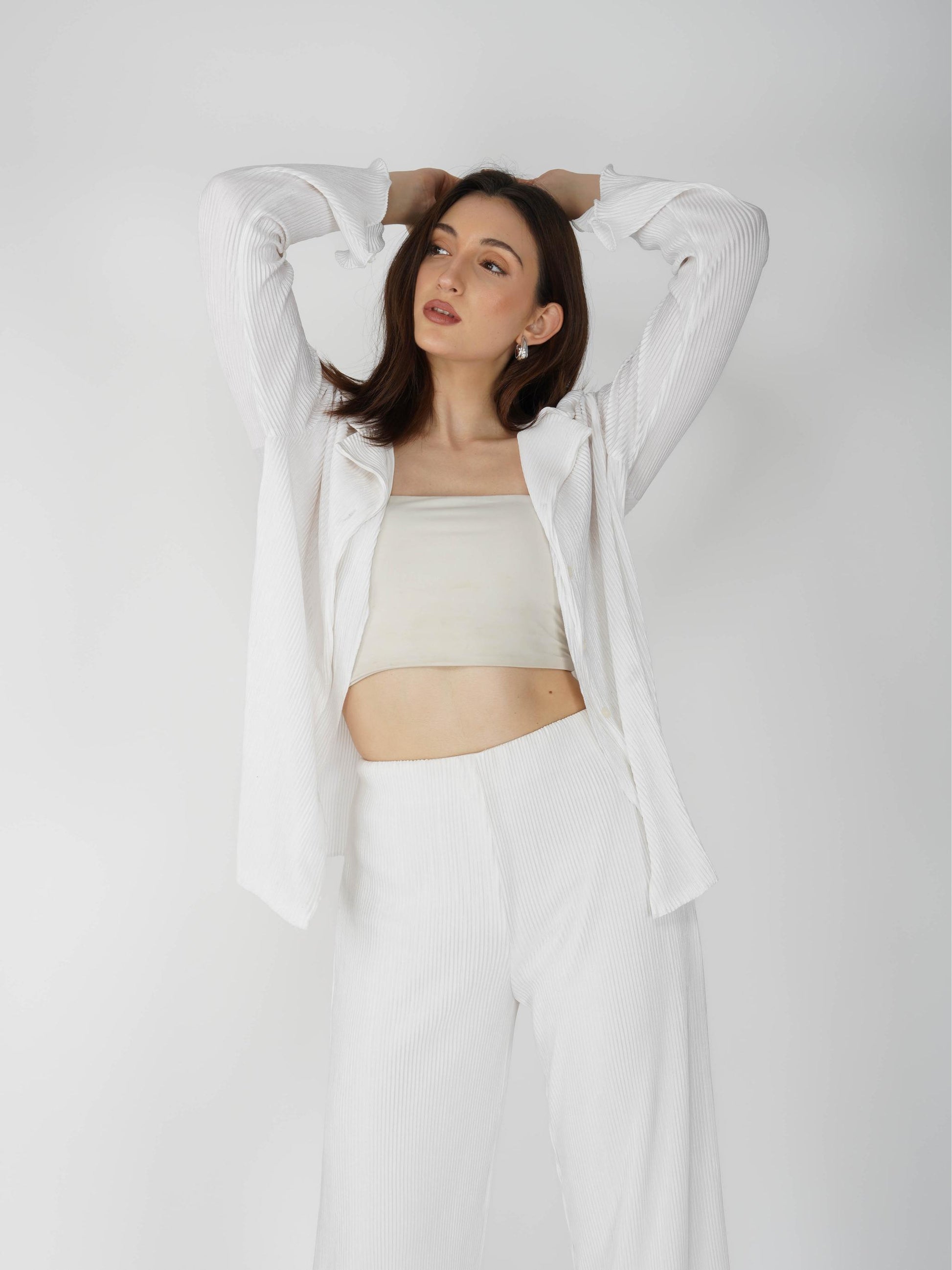 Stay effortlessly chic with the Bliss Coord in Dove White This sleek white coord set in serene dove grey features a flattering crop top and matching high-waisted pants, designed for a polished yet playful look. Perfect for brunches, evenings out, or laid-back weekends, this set delivers comfort with a side of style.