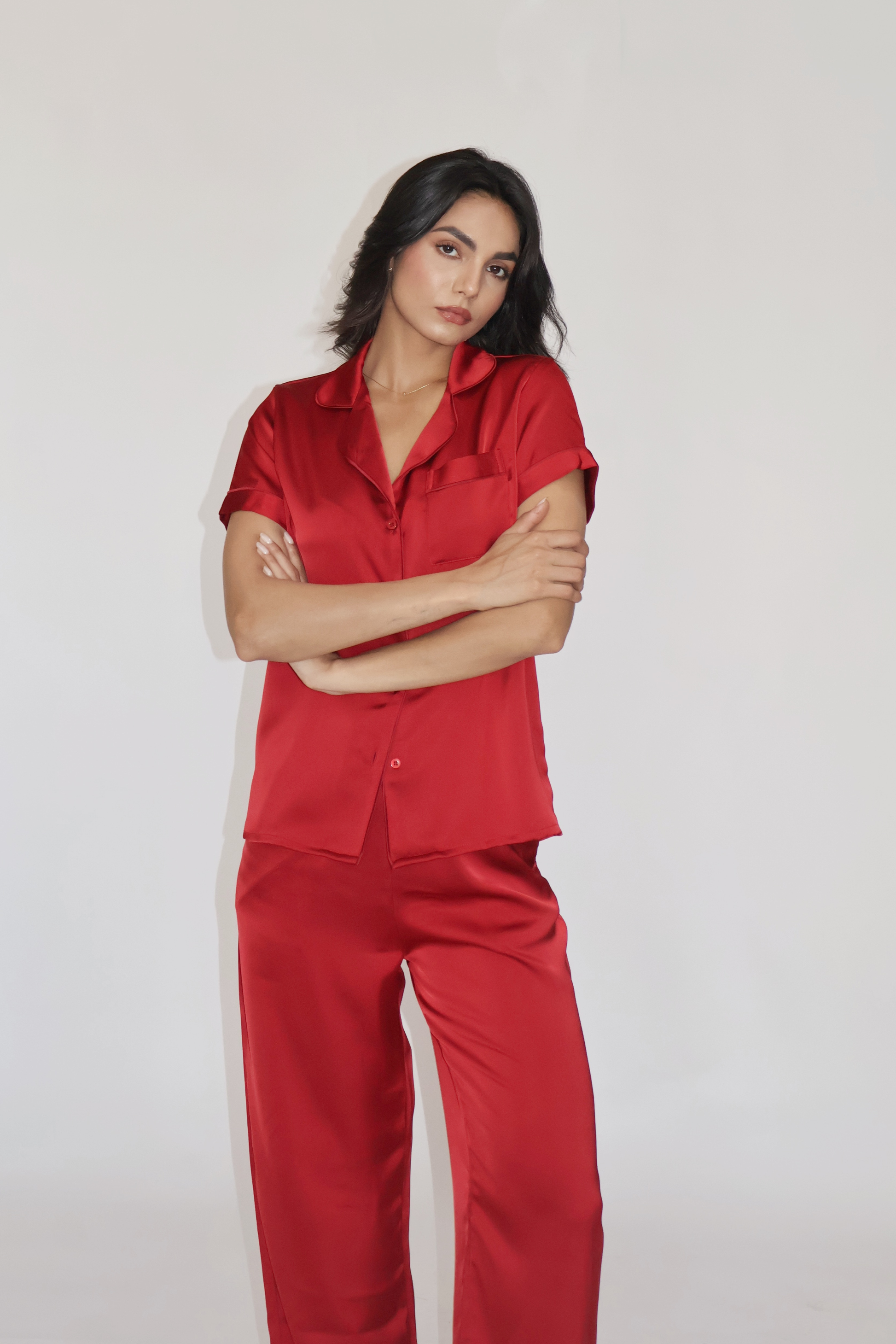 BUTTER SILK PJ SET - (Cherry)