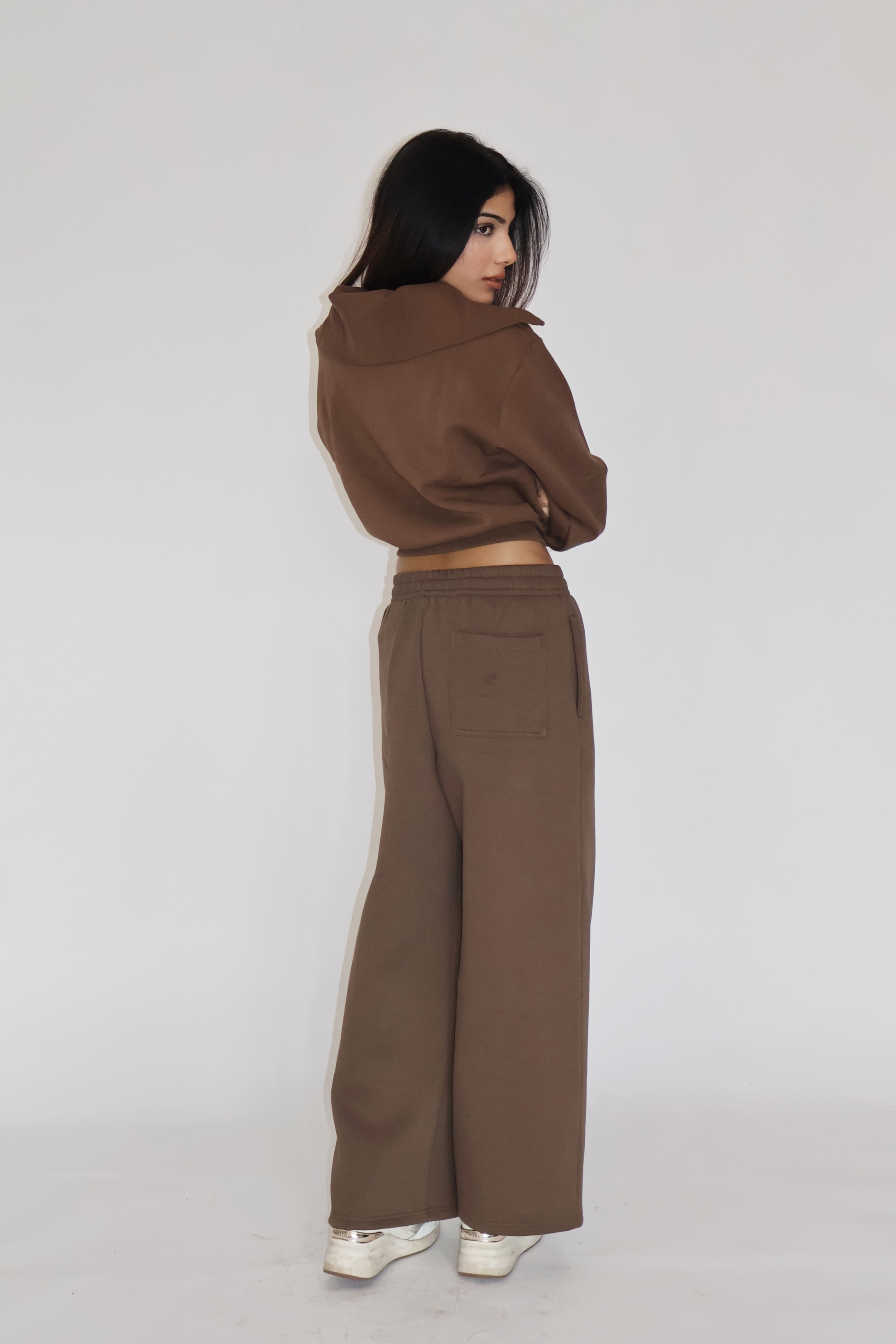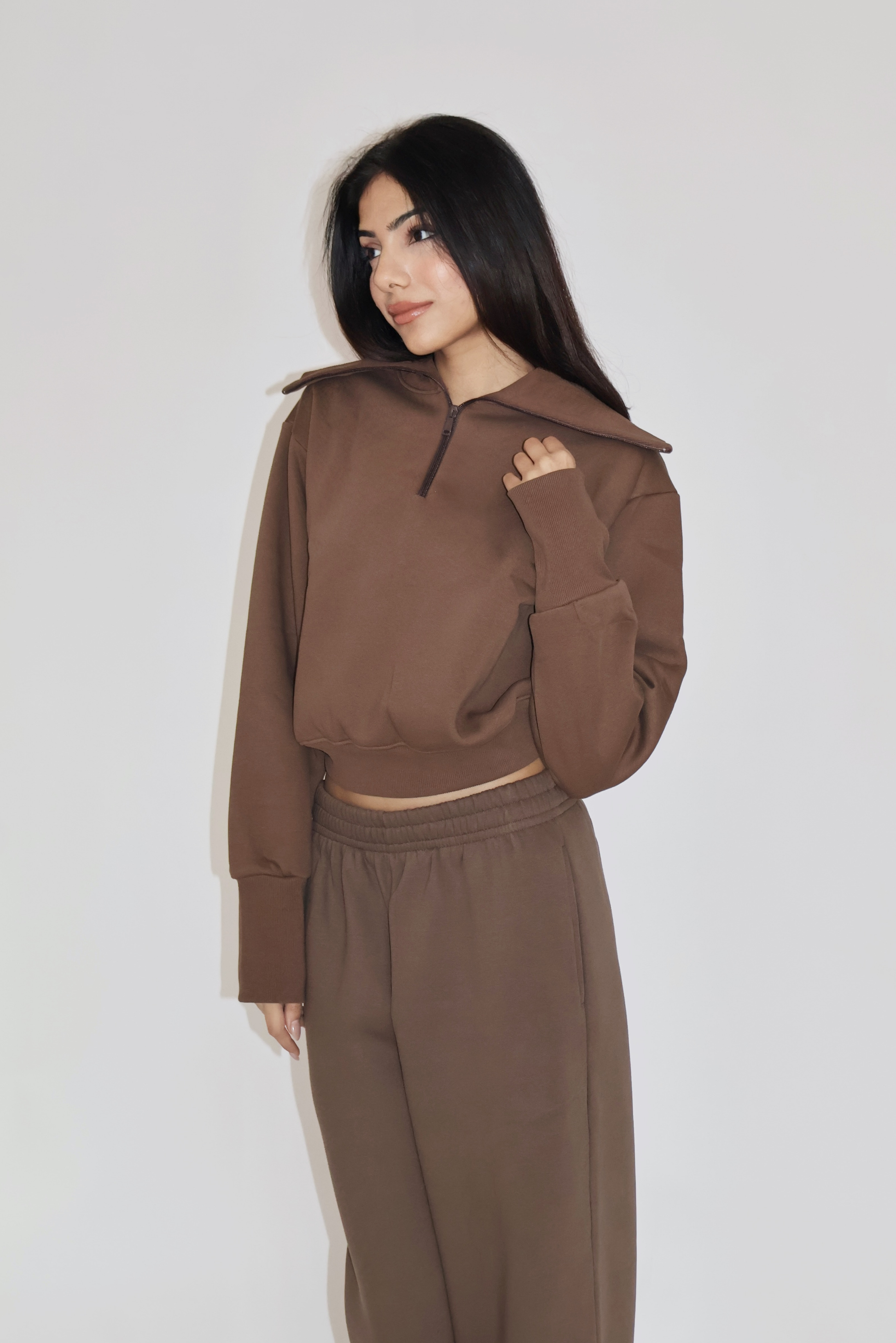 CROPPED ZIPPER CO-ORD SET - (Brown)