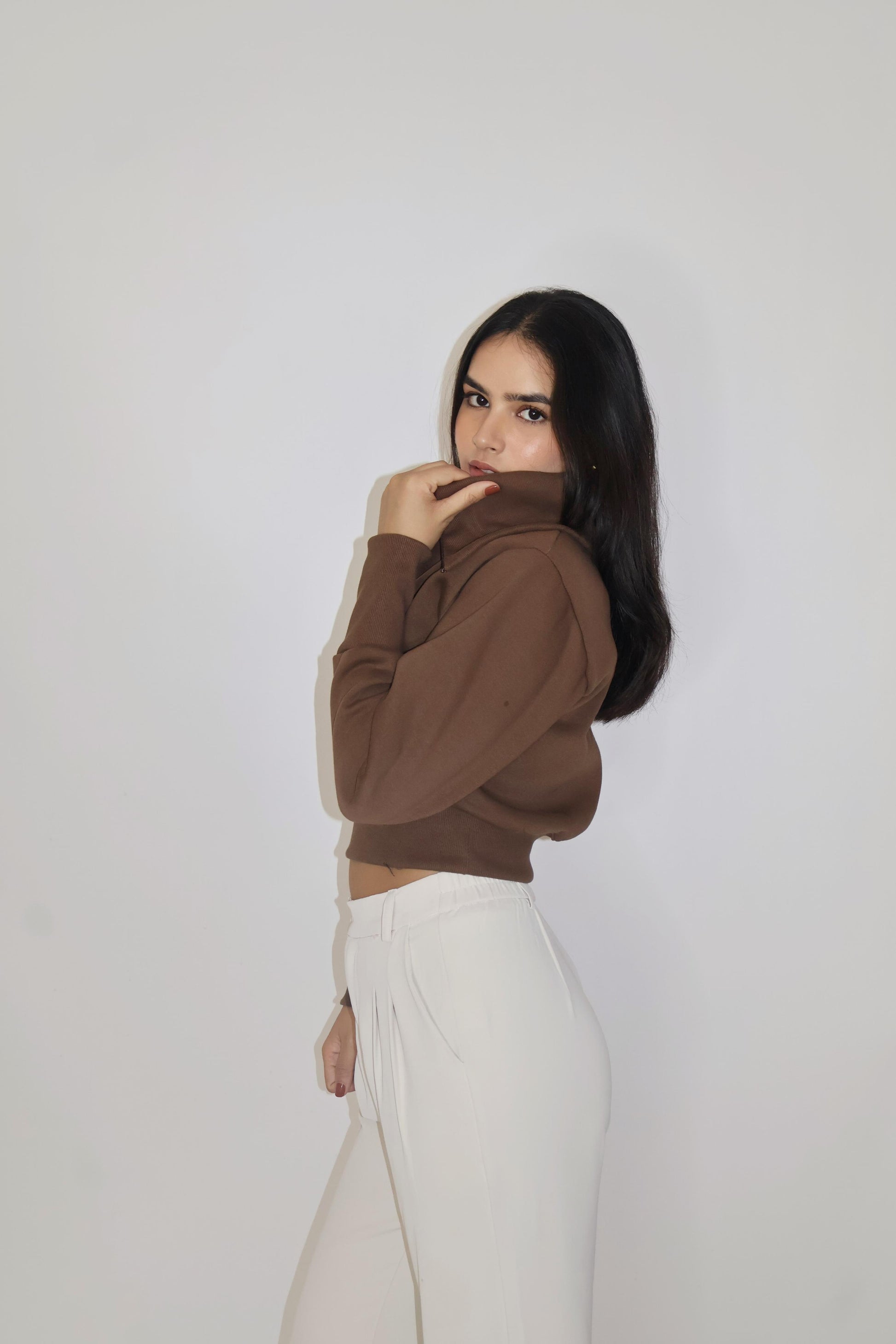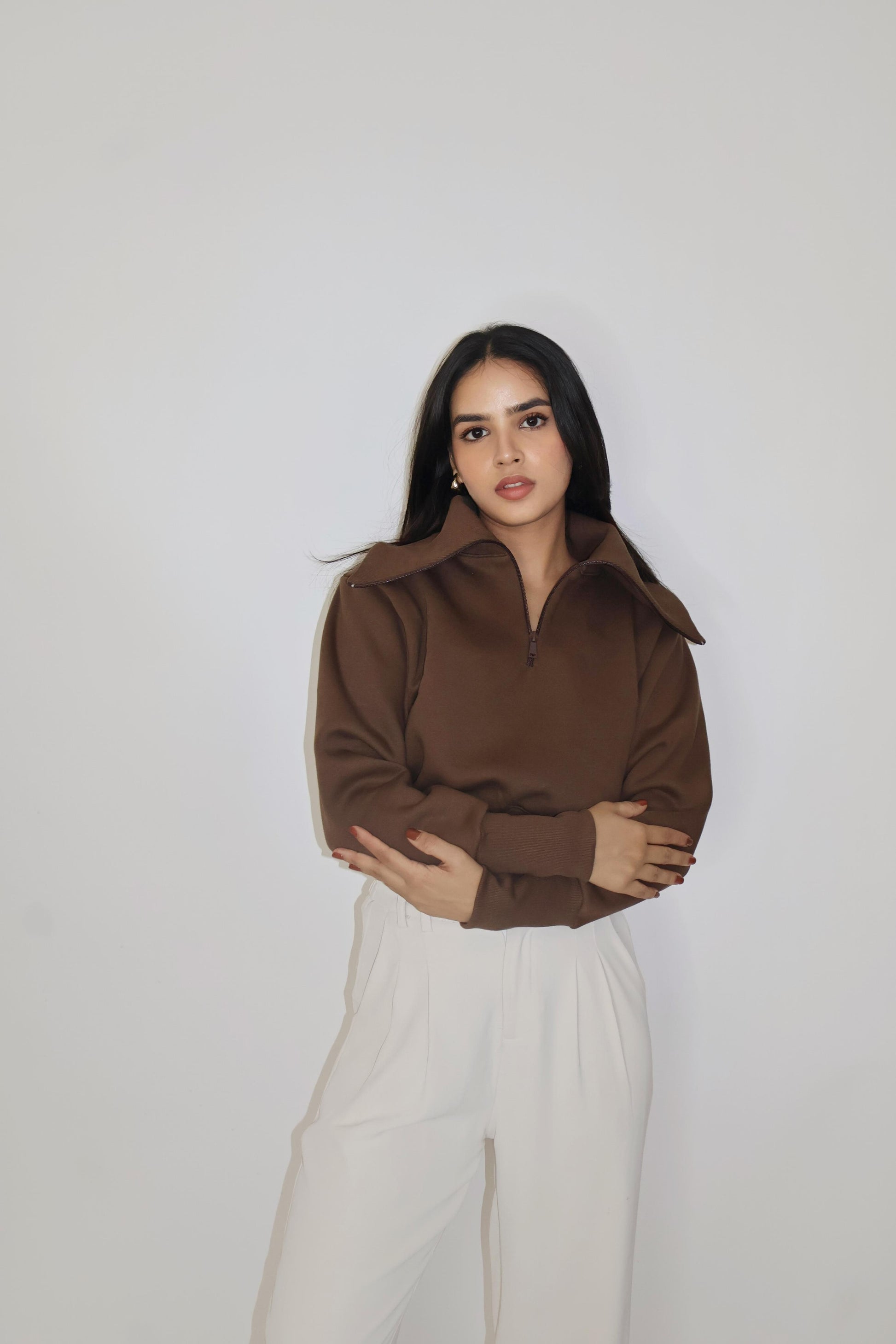 Brown Full Sleeve Cropped Zipper Top - Cropped Zipper (Coco)