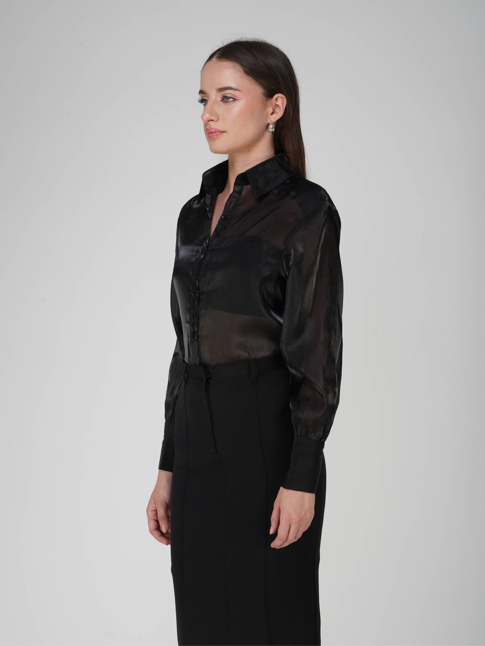 Black Oversized Sheer Shirt - Dew Shirt (Onyx)