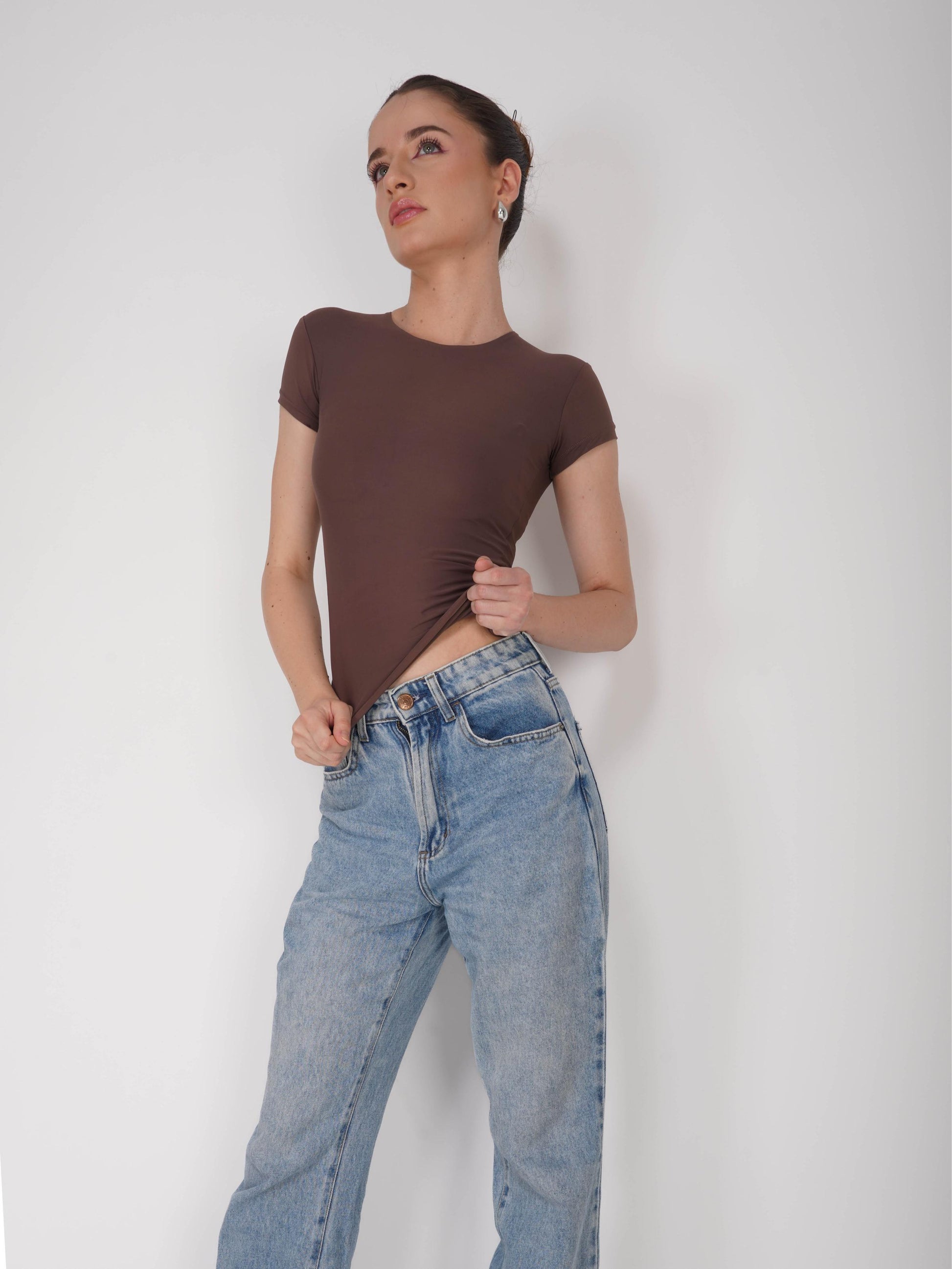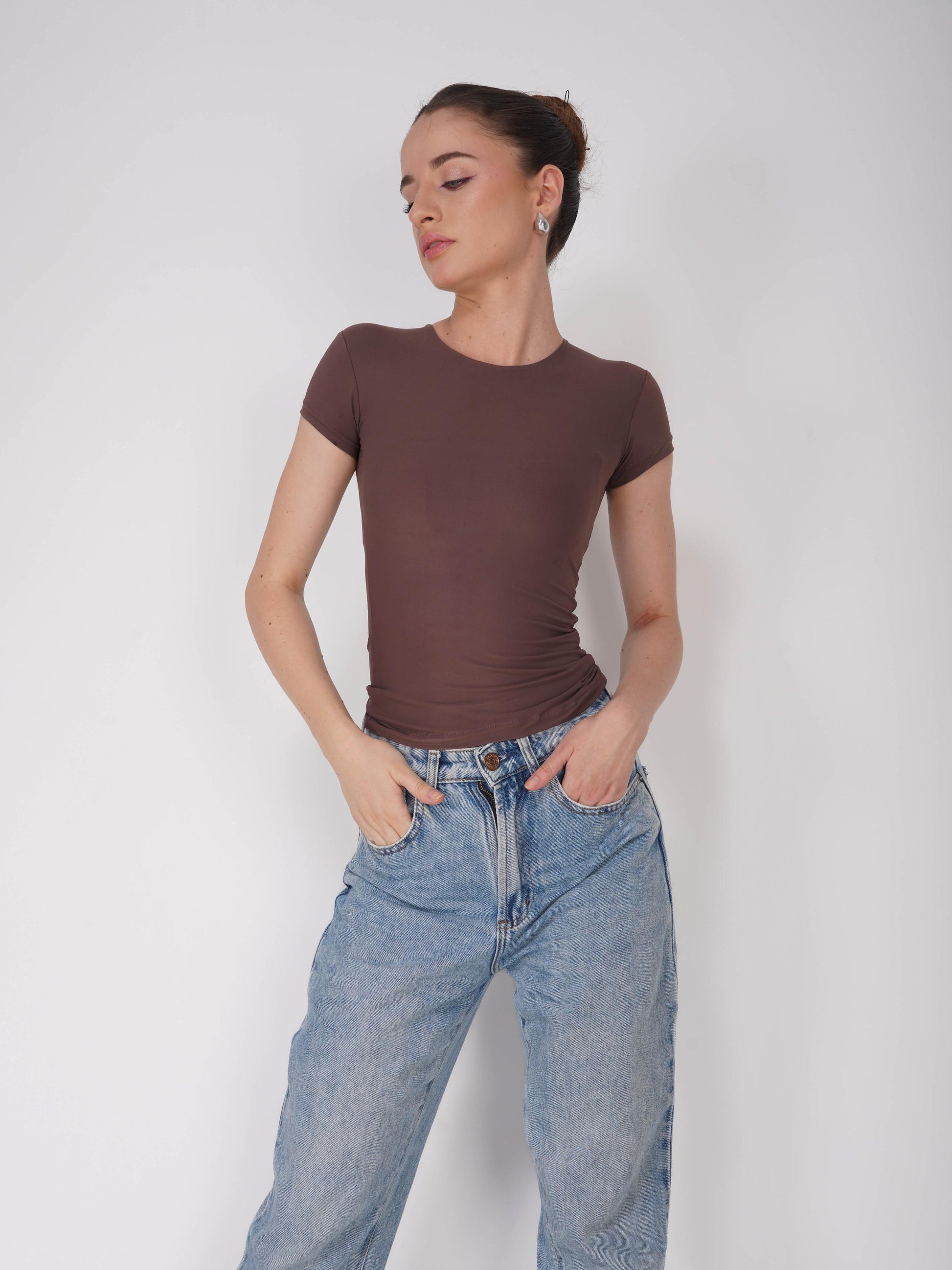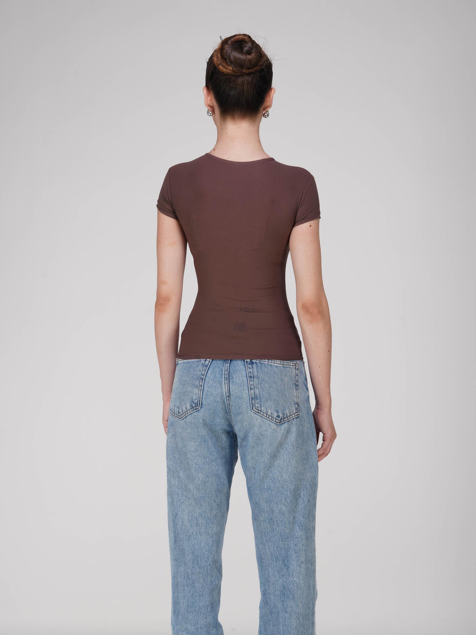 Brown Double Layered Fitted Tee - Drift Tee (Coco)