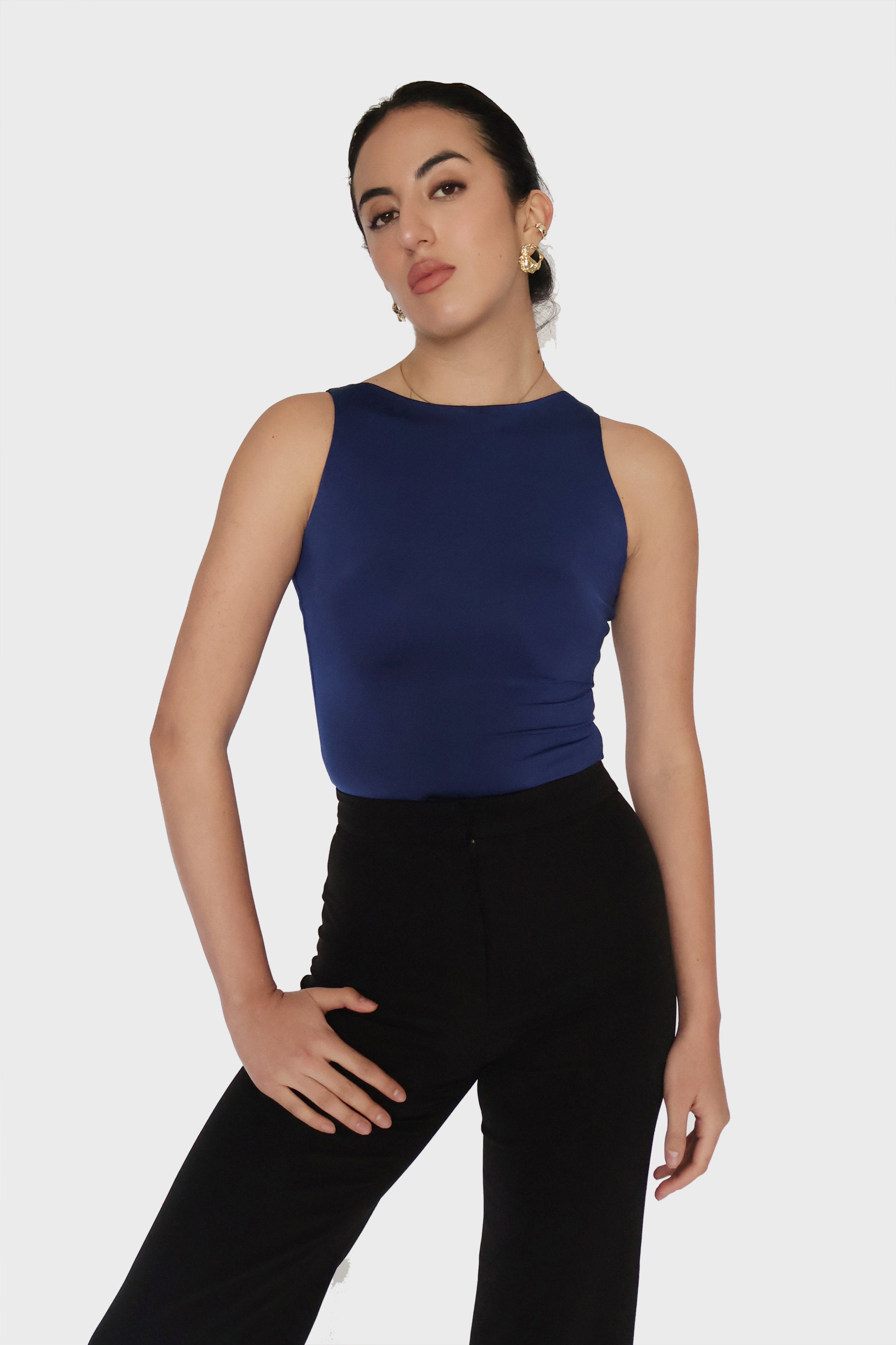 Elevate your essentials with the Fern Bodysuit in Navy. This boat neck bodysuit in classic navy blue features a flattering fitted silhouette and elegant neckline, perfect for styling solo or layering under jackets for a sleek, polished look.
