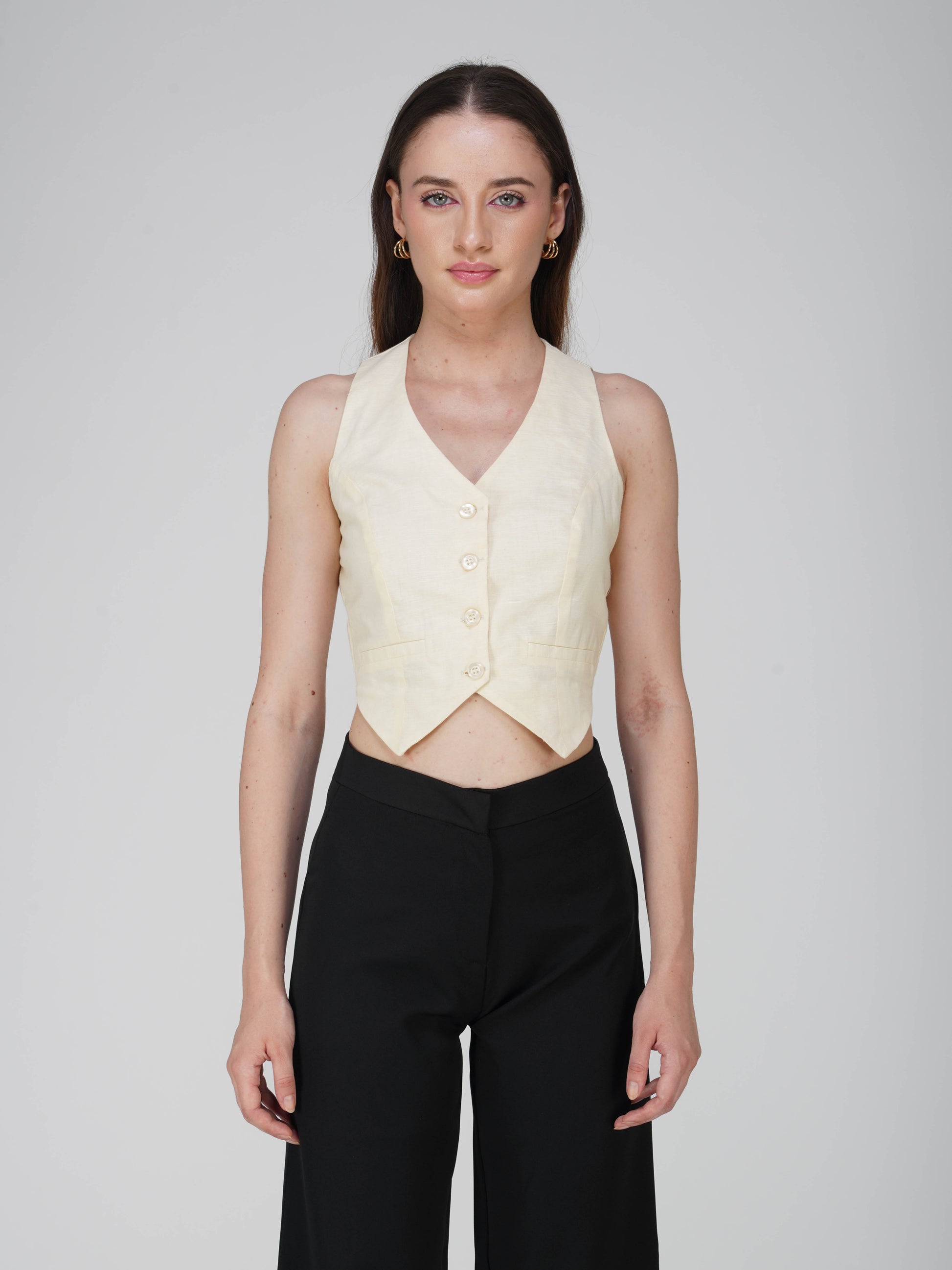 Sharpen up your layers with the Frost Waistcoat in Cream. This tailored waistcoat in soft cream off-white features a structured fit and clean lines, perfect for adding polish to your workwear or elevating your everyday style with a modern edge.