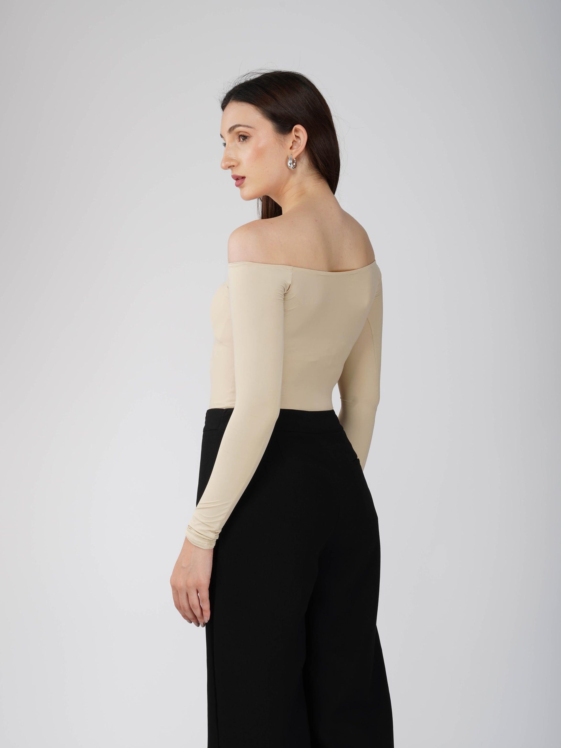 Beige Off-Shoulder Bodysuit - Glaze Bodysuit (Sand)