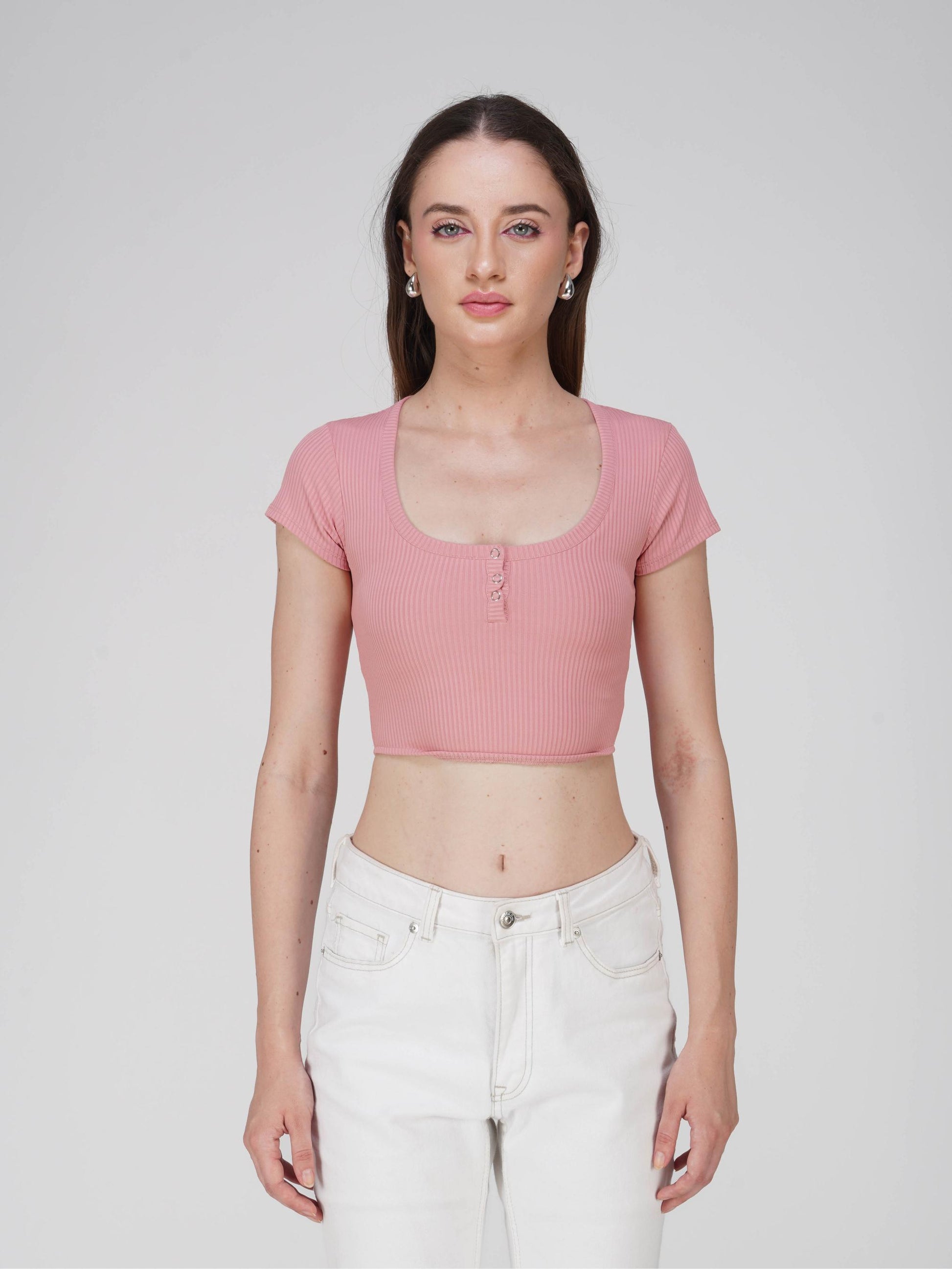 Pink Crop Scoop Neck Top - Loom Top (Flamingo)