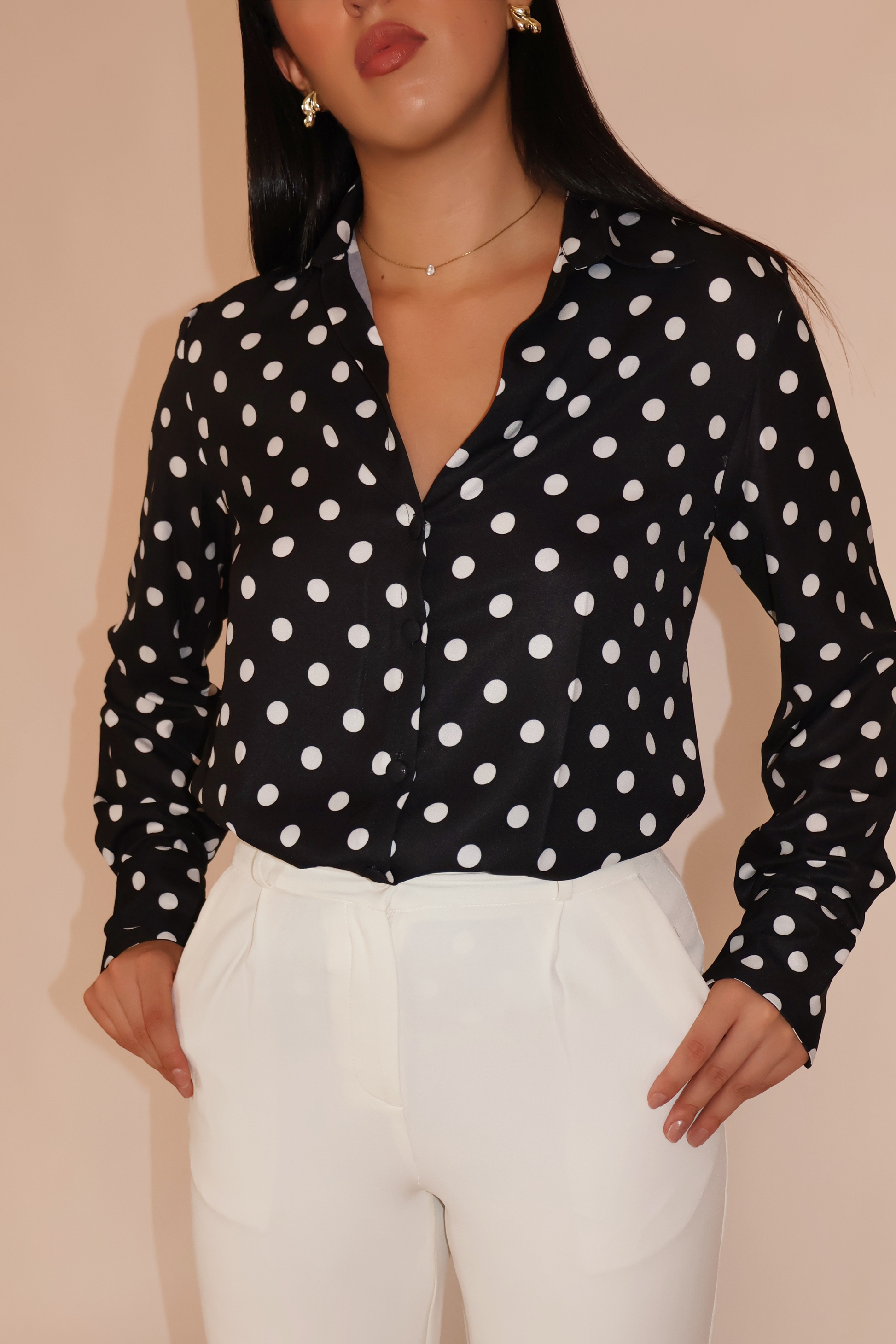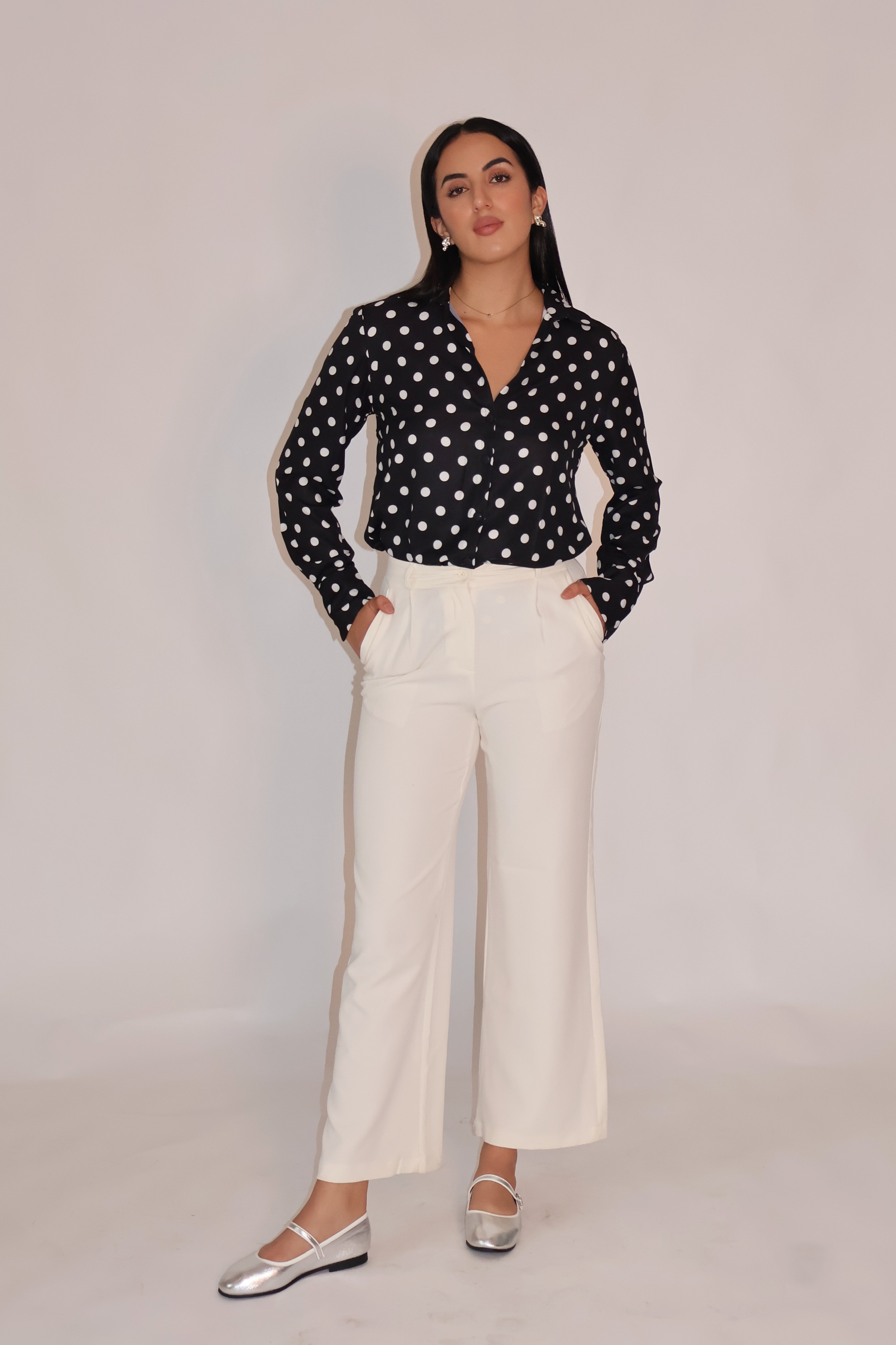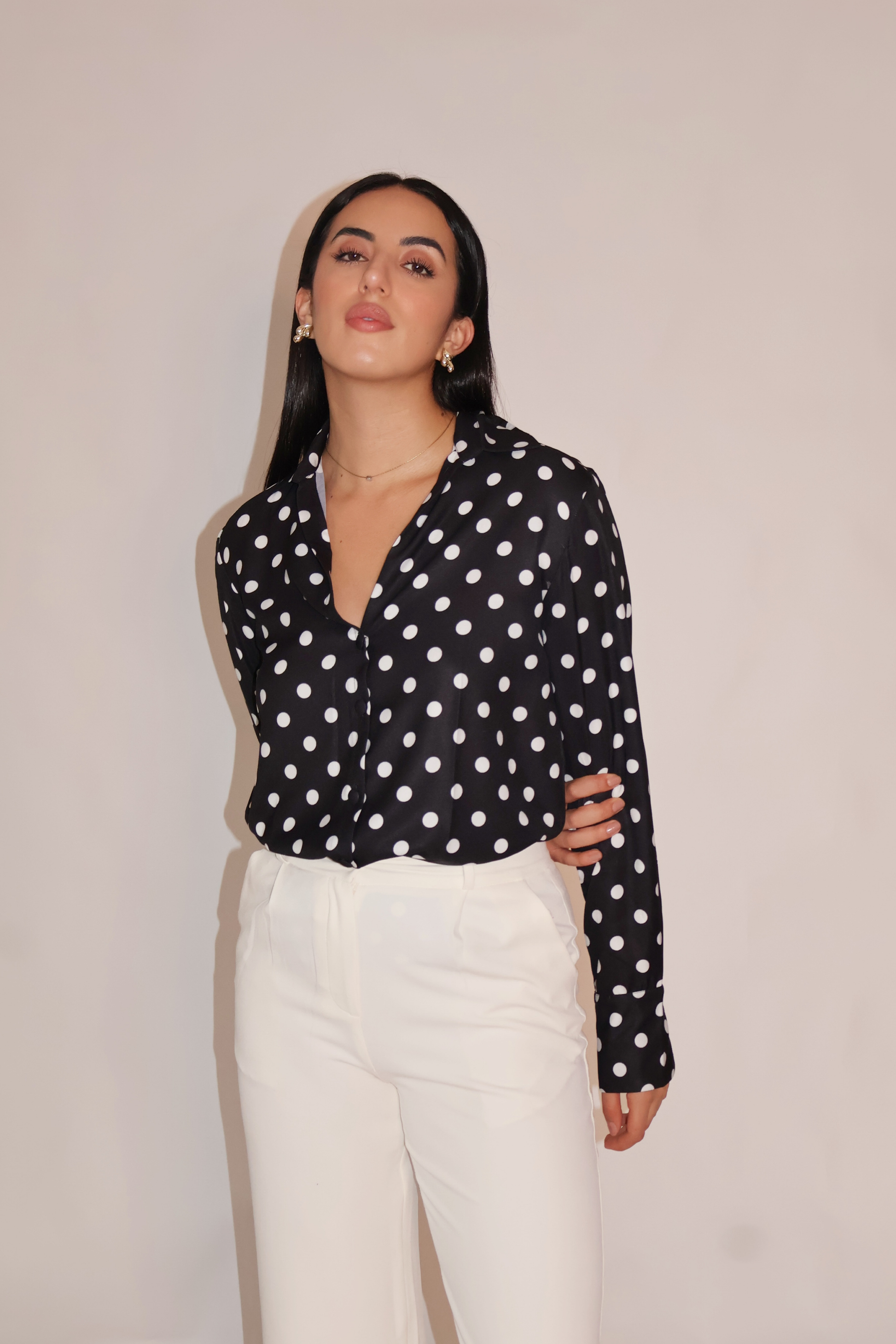 The POPI Shirt is a modern wardrobe staple featuring a broad smart collar, cloth-covered buttons, and a sharp tailored fit—neither too loose nor too fitted. Made from imported georgette crepe, the fabric falls beautifully, lending the shirt a polished yet effortless feel. Wear it tucked in with trousers for workwear chic, or left out with denims and skirts for refined casual styling. Finished with premium craftsmanship, this is a versatile essential with an elegant fall. The model is wearing size S. Delivery within 3–15 business days.