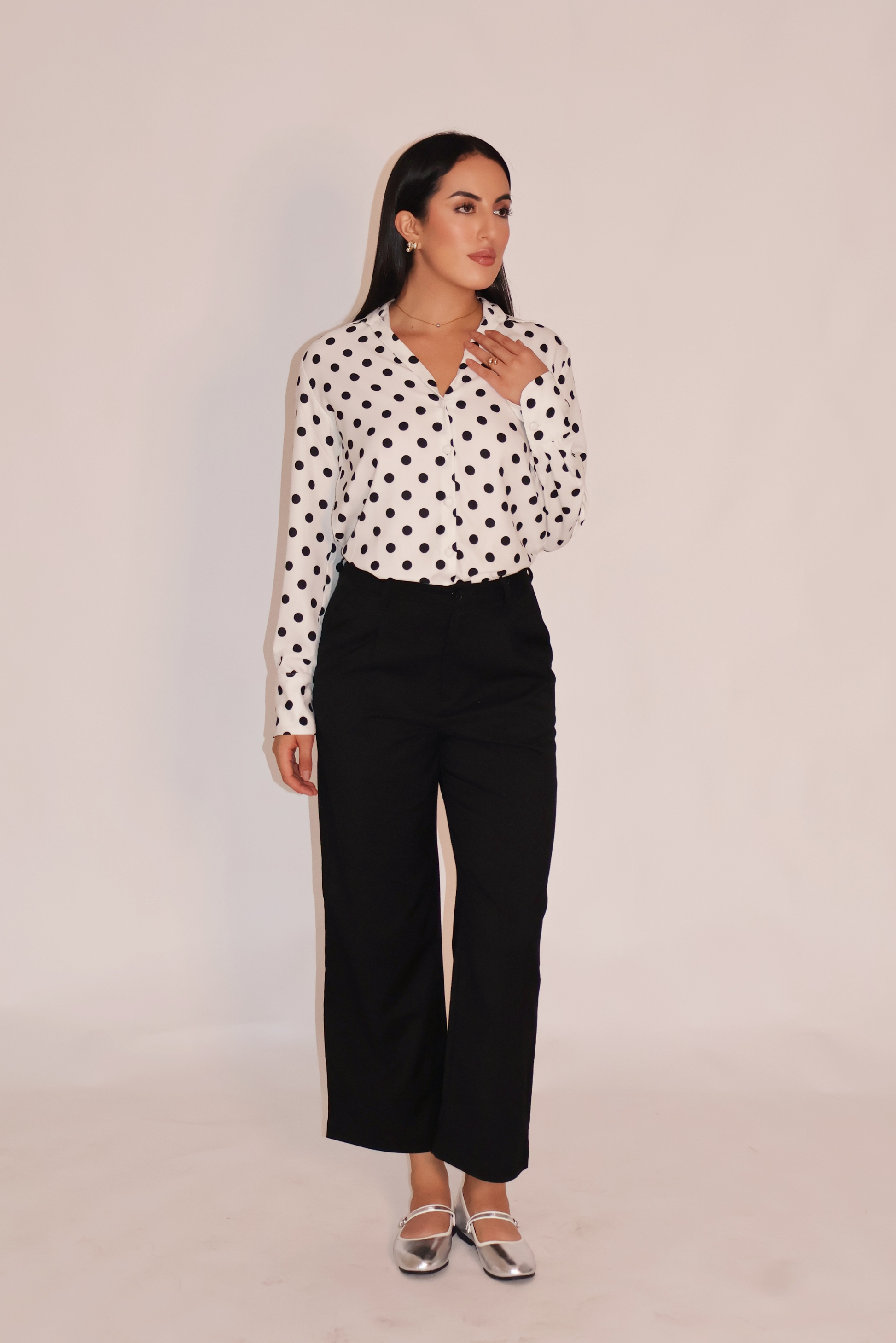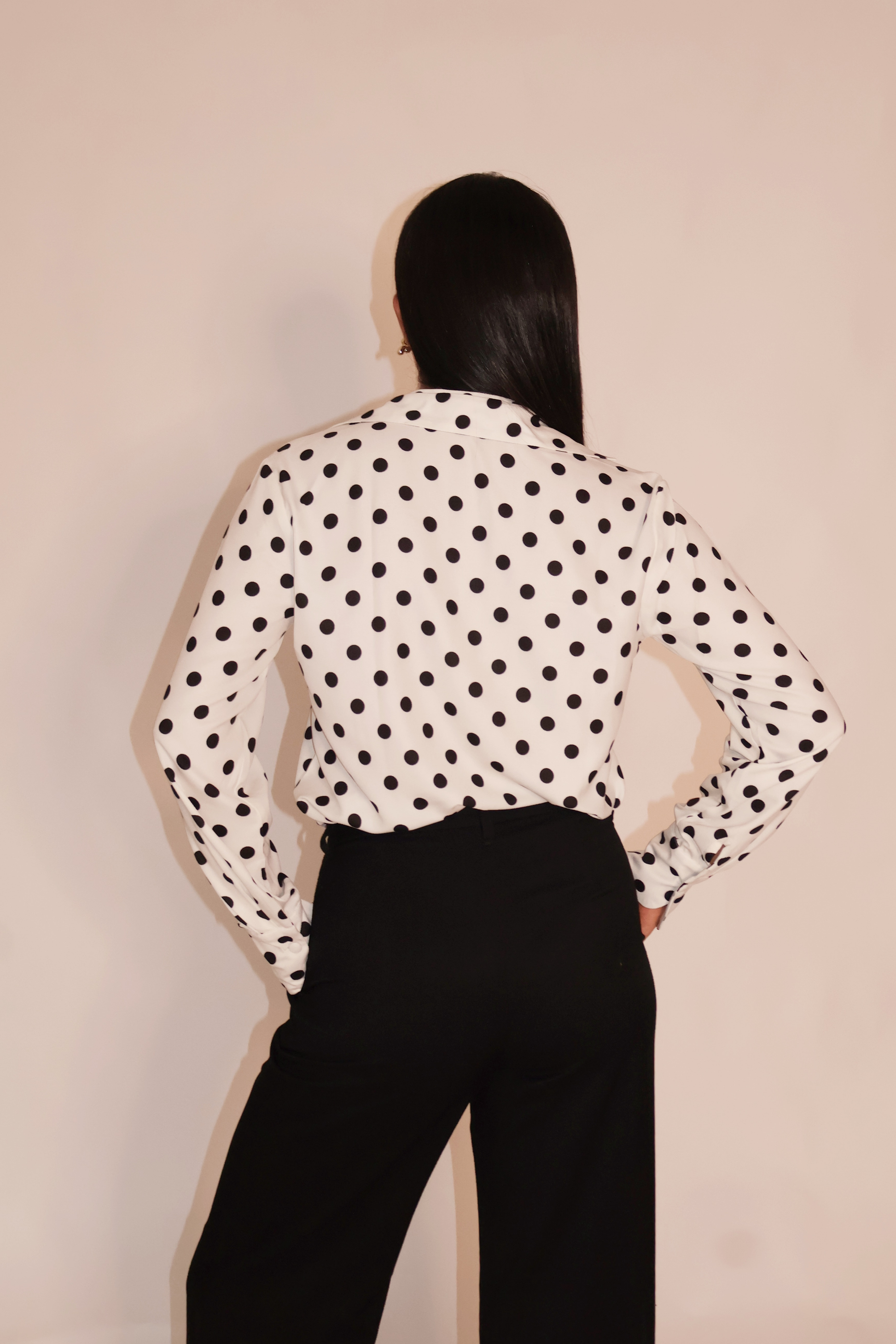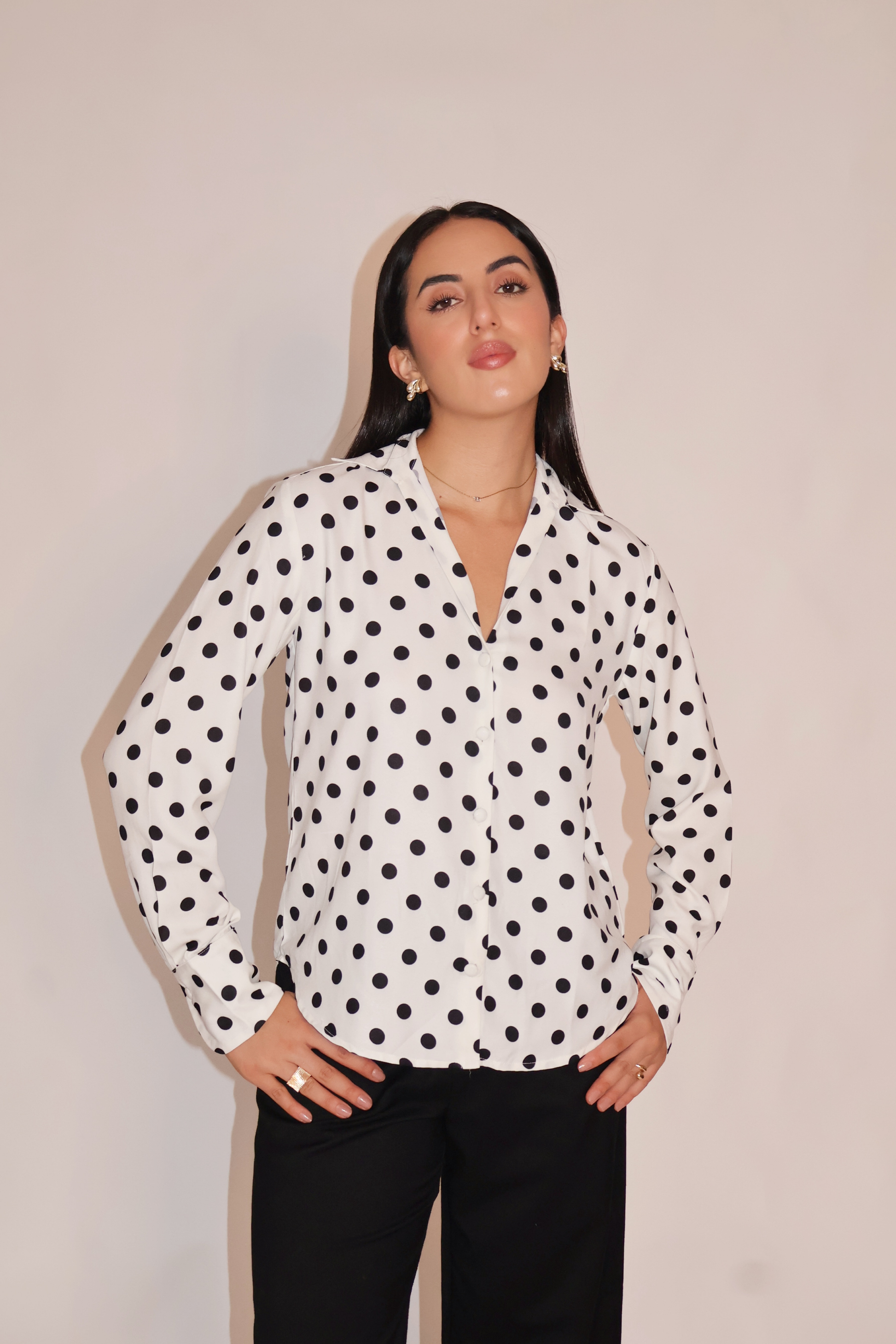 The POPI Shirt is a modern wardrobe staple featuring a broad smart collar, cloth-covered buttons, and a sharp tailored fit—neither too loose nor too fitted. Made from imported georgette crepe, the fabric falls beautifully, lending the shirt a polished yet effortless feel. Wear it tucked in with trousers for workwear chic, or left out with denims and skirts for refined casual styling. Finished with premium craftsmanship, this is a versatile essential with an elegant fall. The model is wearing size S. Delivery within 3–15 business days.