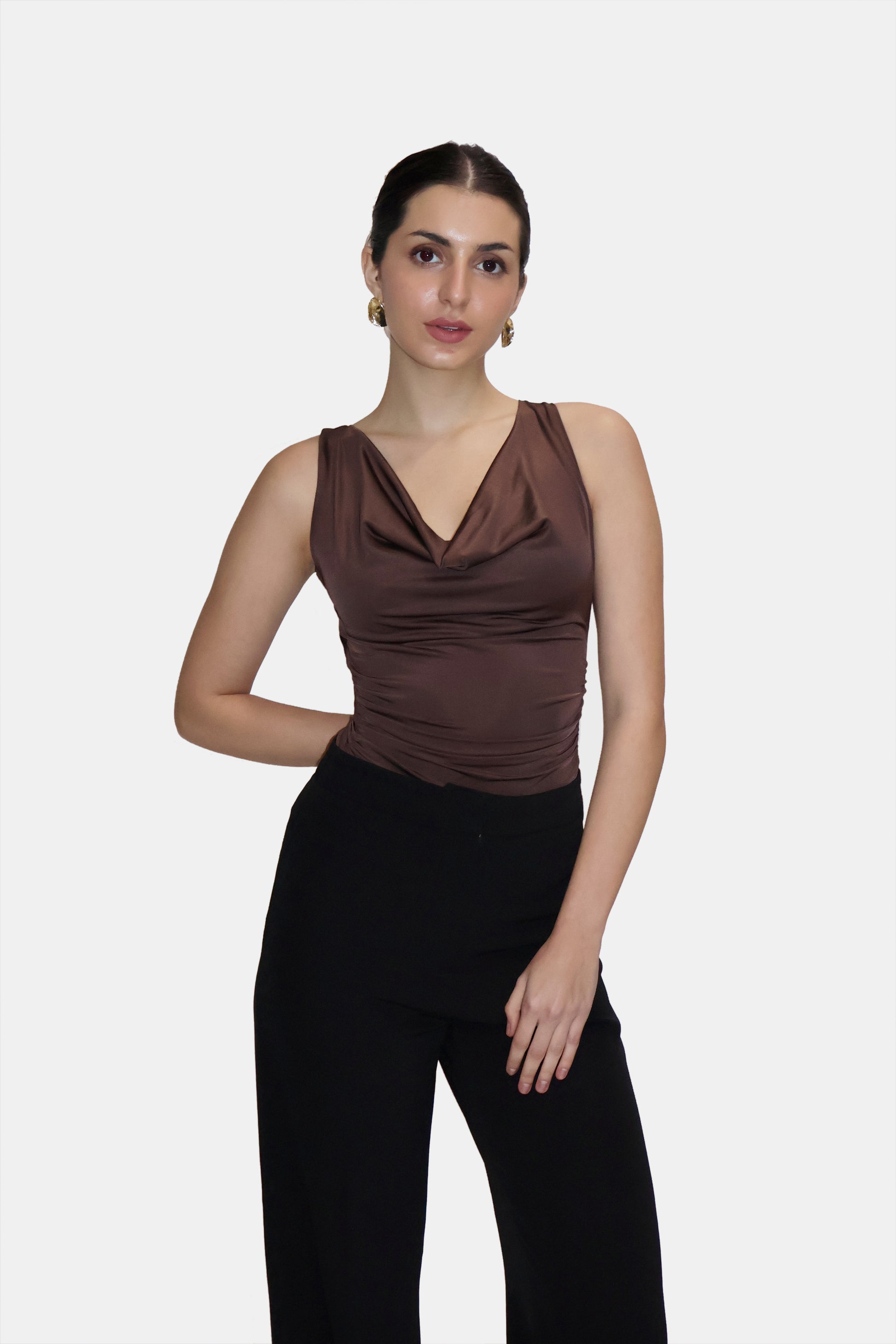 Brown Cowl Neck Bodysuit - Prism Bodysuit (Coco)
