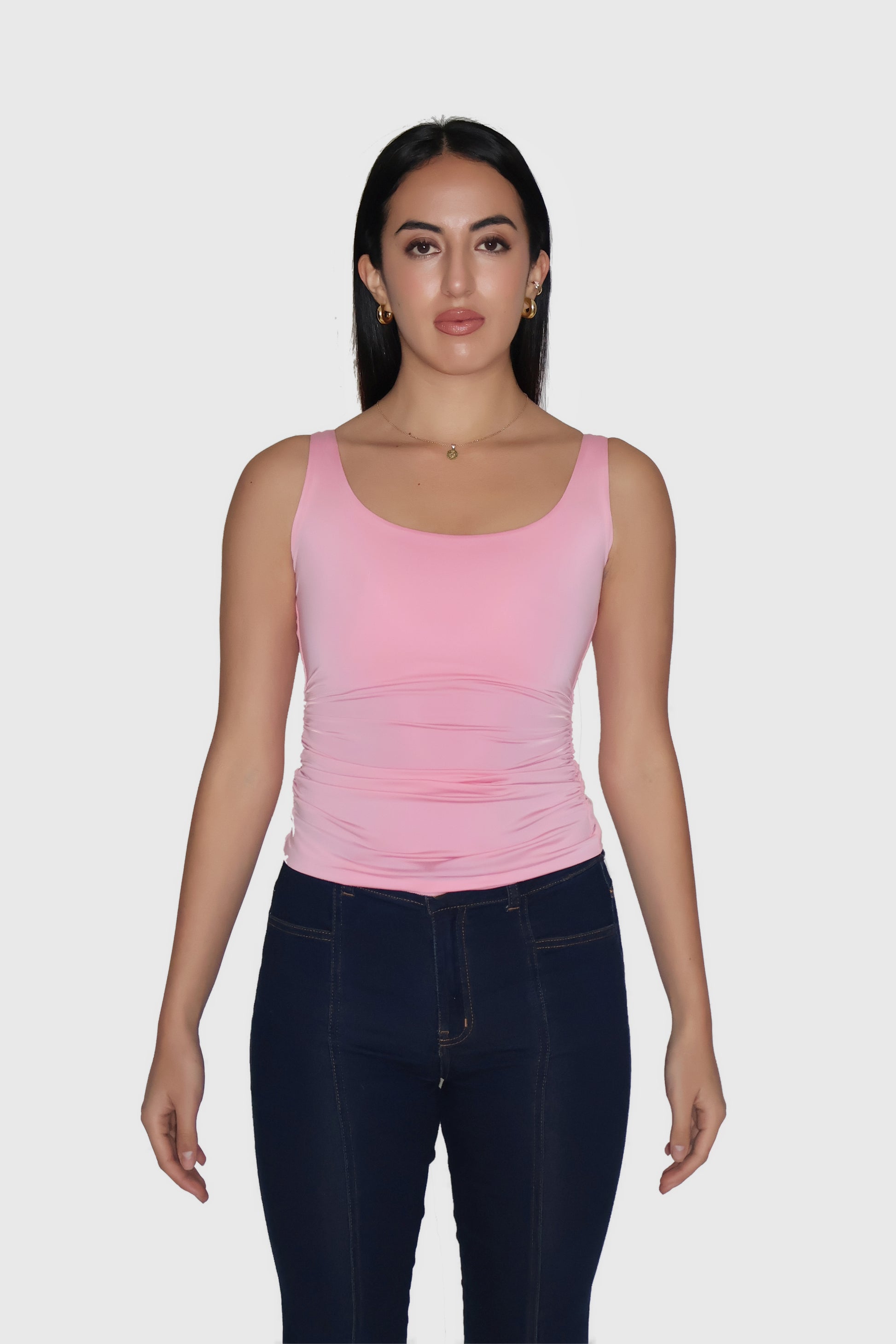 Pink Ruched Tank Top - Quill Top (Flamingo)