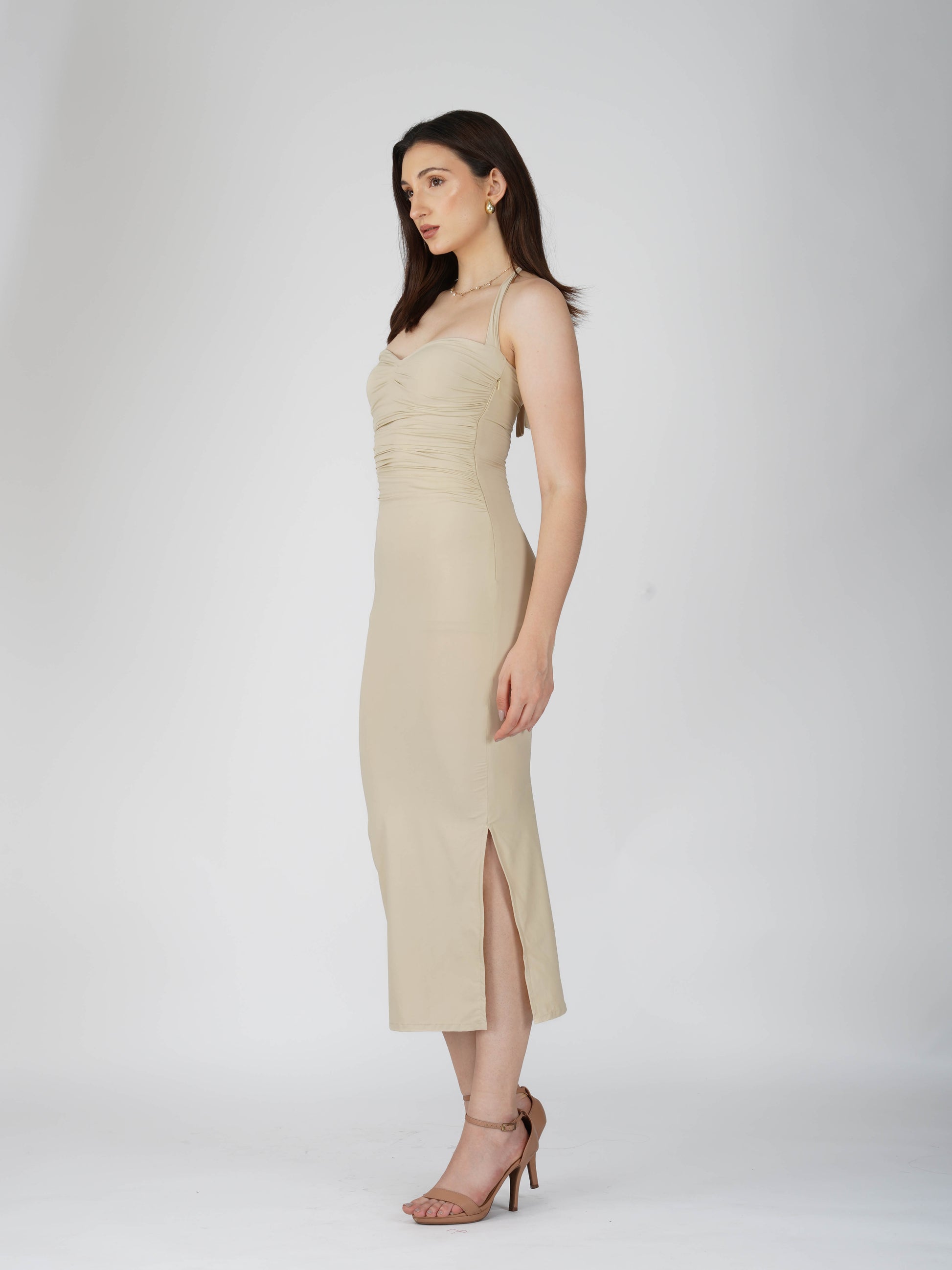Beige Sweetheart Neckline Dress - Ray Dress (Sand)