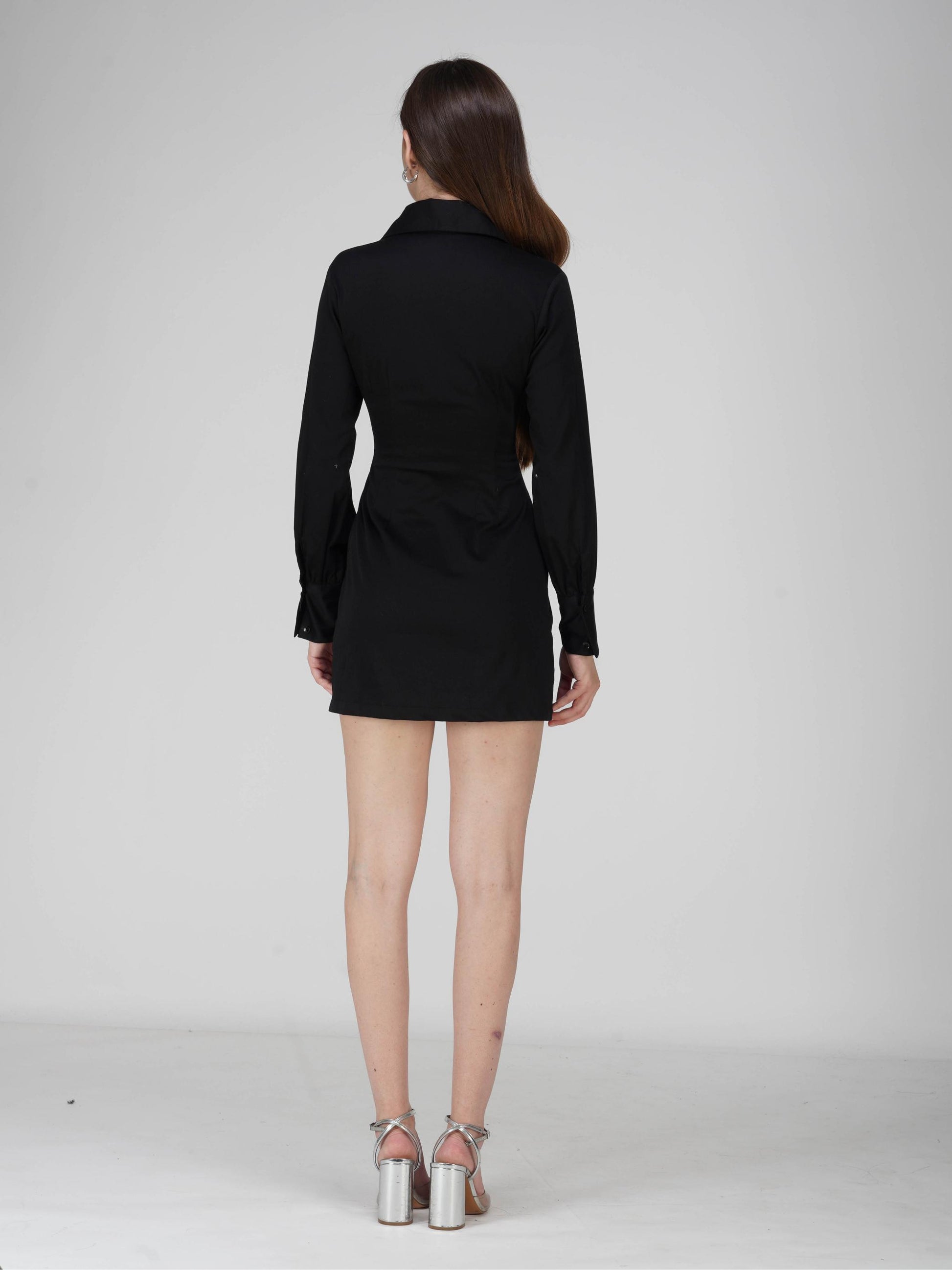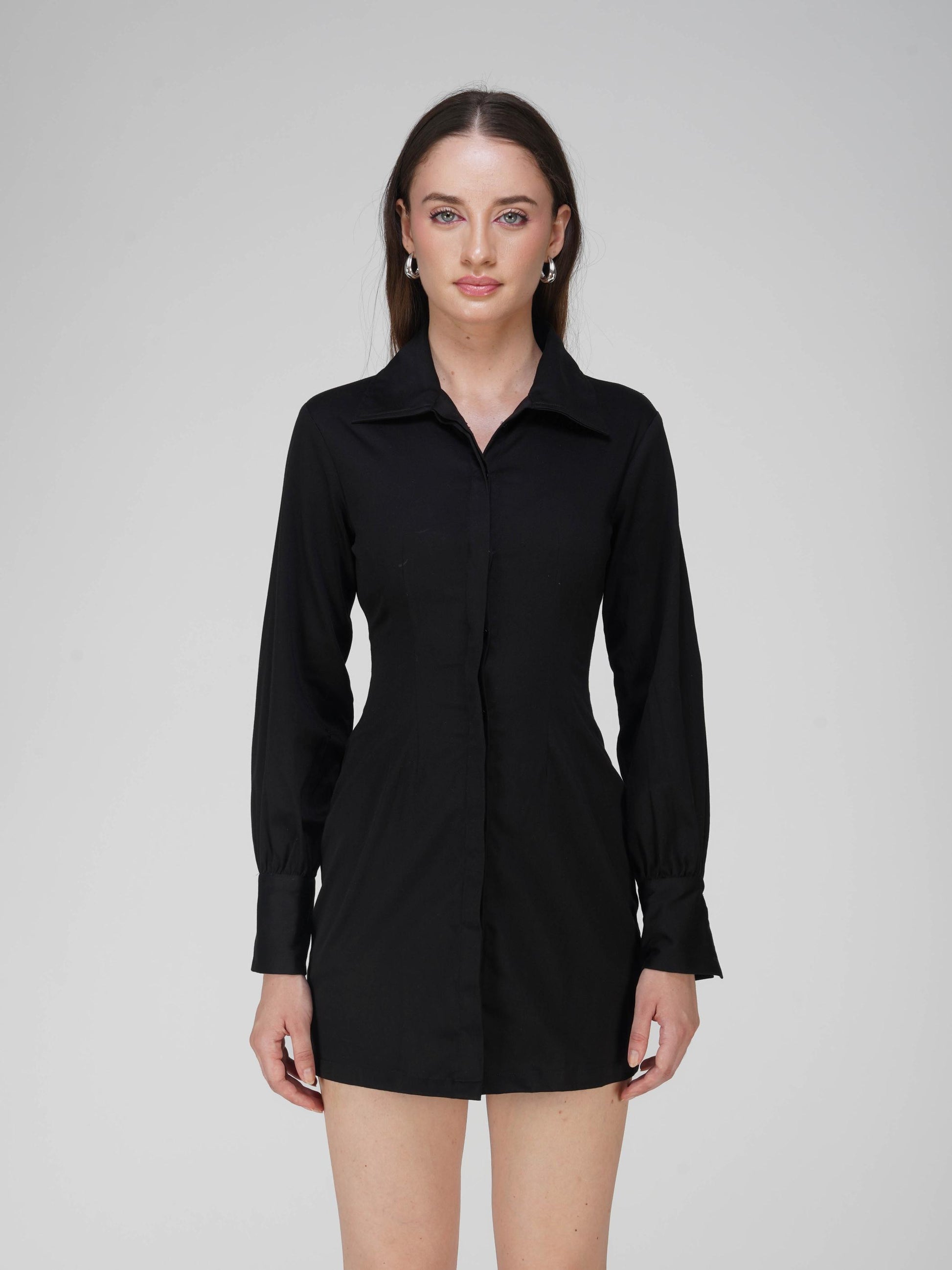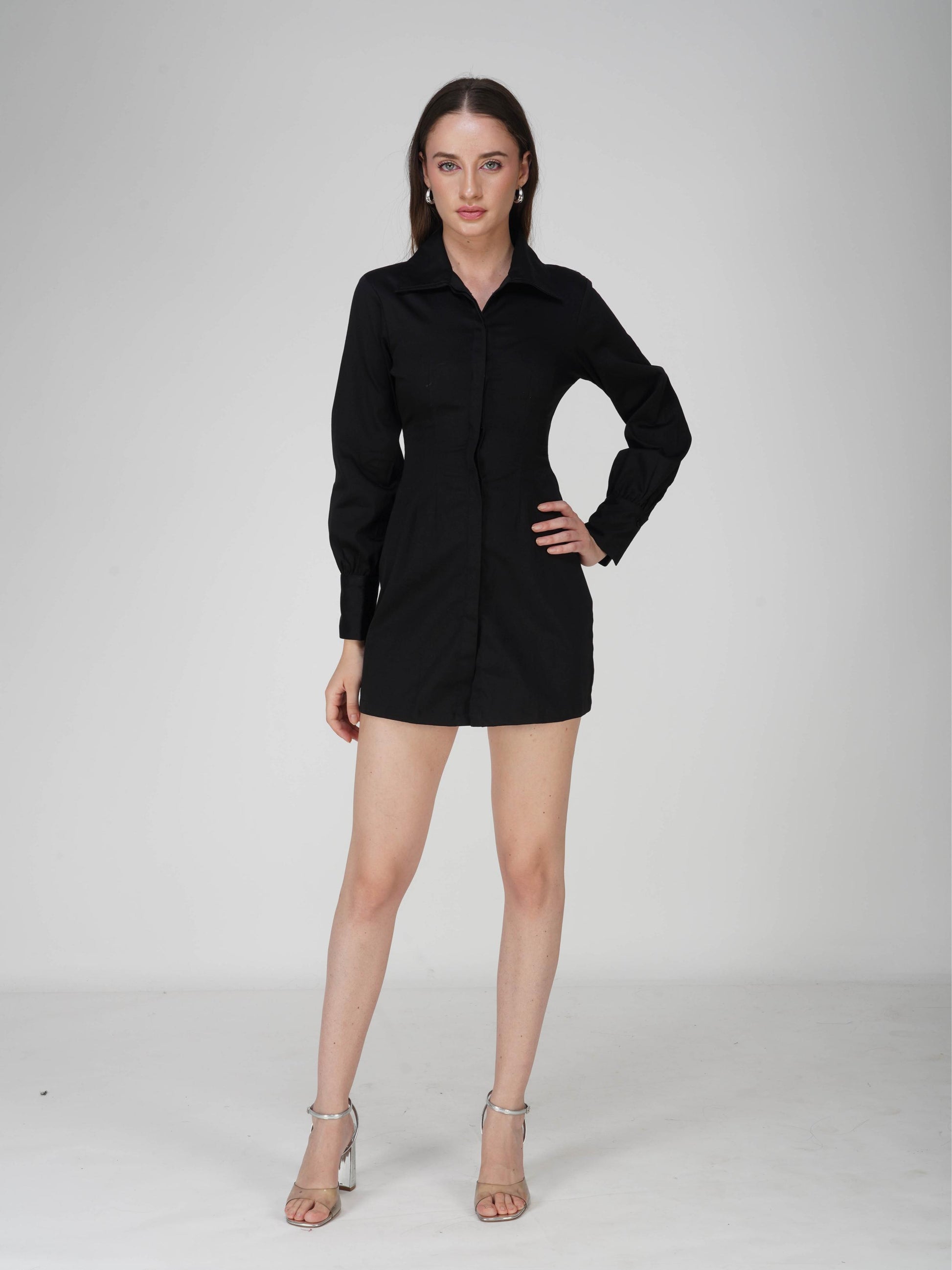 Black Corset Illusion Shirt Dress - Vivid Dress (Onyx)